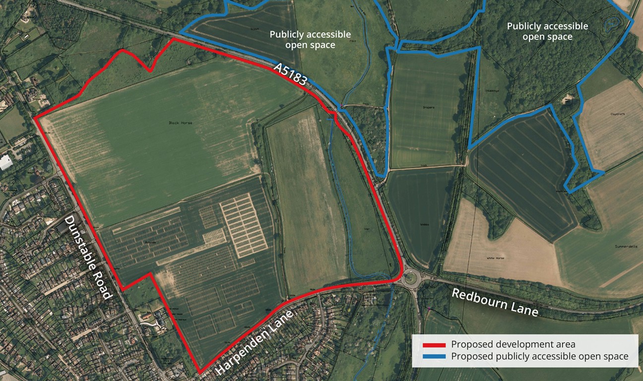 Firstly the Crown Estate is preparing a planning application for 4,000 homes on a 975-acre site, which lies between Redbourn Road and Hemel Hempstead Road to the east of Hemel Hempstead.