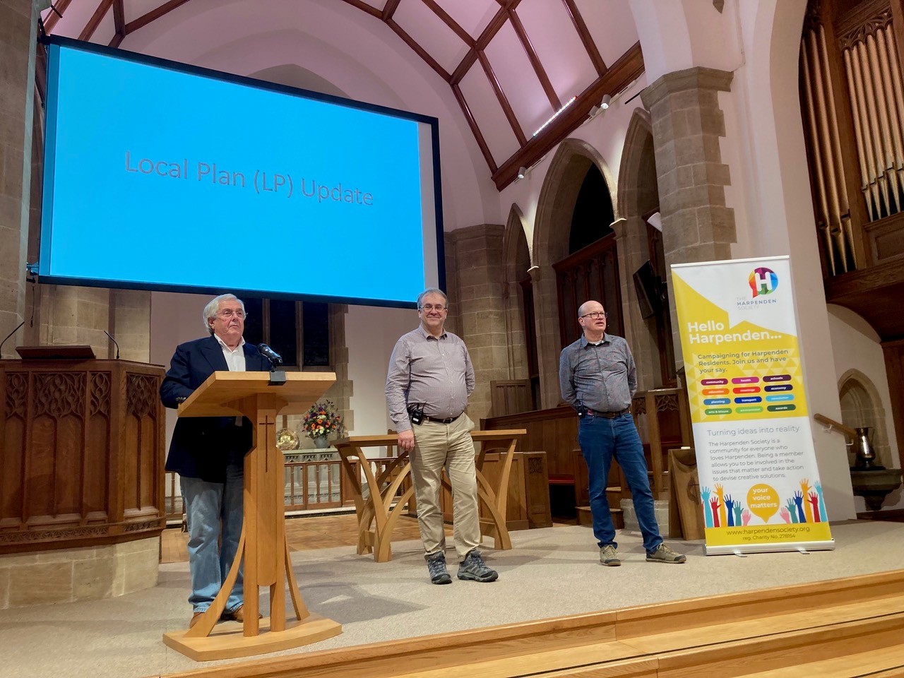 The Society Public Meeting on Jan 22 was held at the High Street Methodist Church which was attended by an audience of over 100 . Guest speakers Cllr Paul de Kort and HCC Paul Kukowskij gave an update on the Local Plan and implications of further government planning legislation.