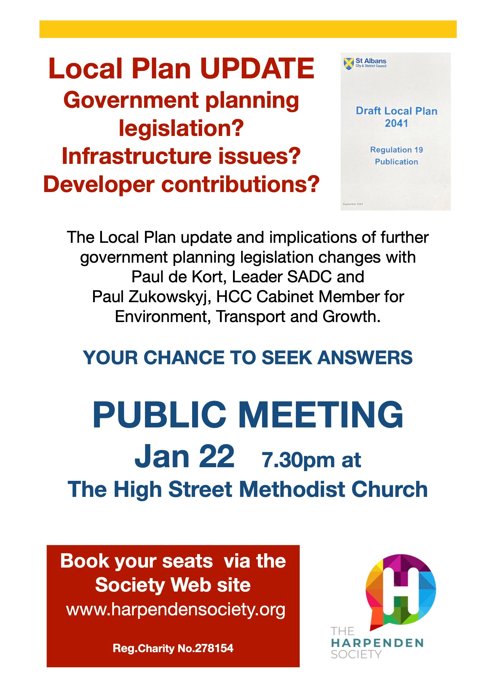 The Harpenden Society is a charitable organisation that was formed in 1930 and campaigns for things that matter to the people of Harpenden